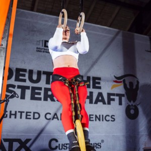 Die Anfänge…was als Gemeinschaftswettkampf geplant war, entwickelte sich zu einer kleinen bayerischen Meisterschaft. Es war mein erster 1RM Wettkampf überhaupt. Das Hauptziel bestand darin, einen gültigen Ring Muscle Up zu erreichen. Gewichtsklassen gab es bei diesem Wettkampf für Frauen noch nicht. Als Vizesiegerin habe ich dann für Weighted Calisthenics Feuer gefangen.